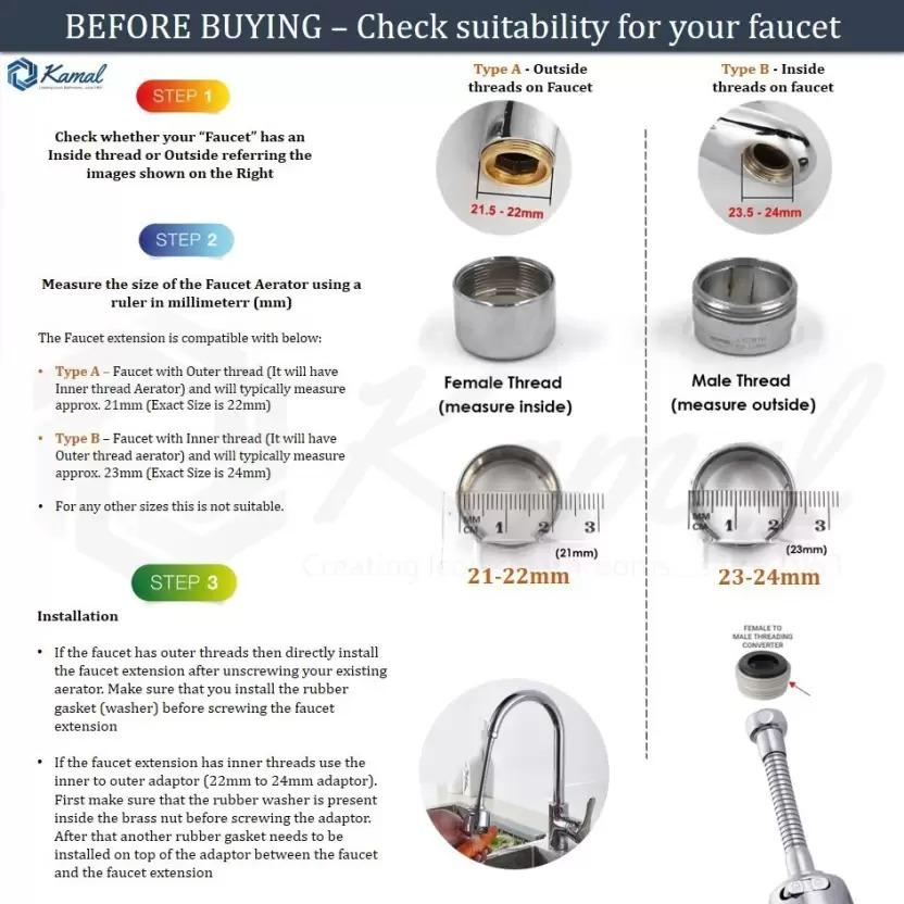 Premium Quality Extension | 360 degree flexible rotation dual flow Spout Faucet(Pack of 2)